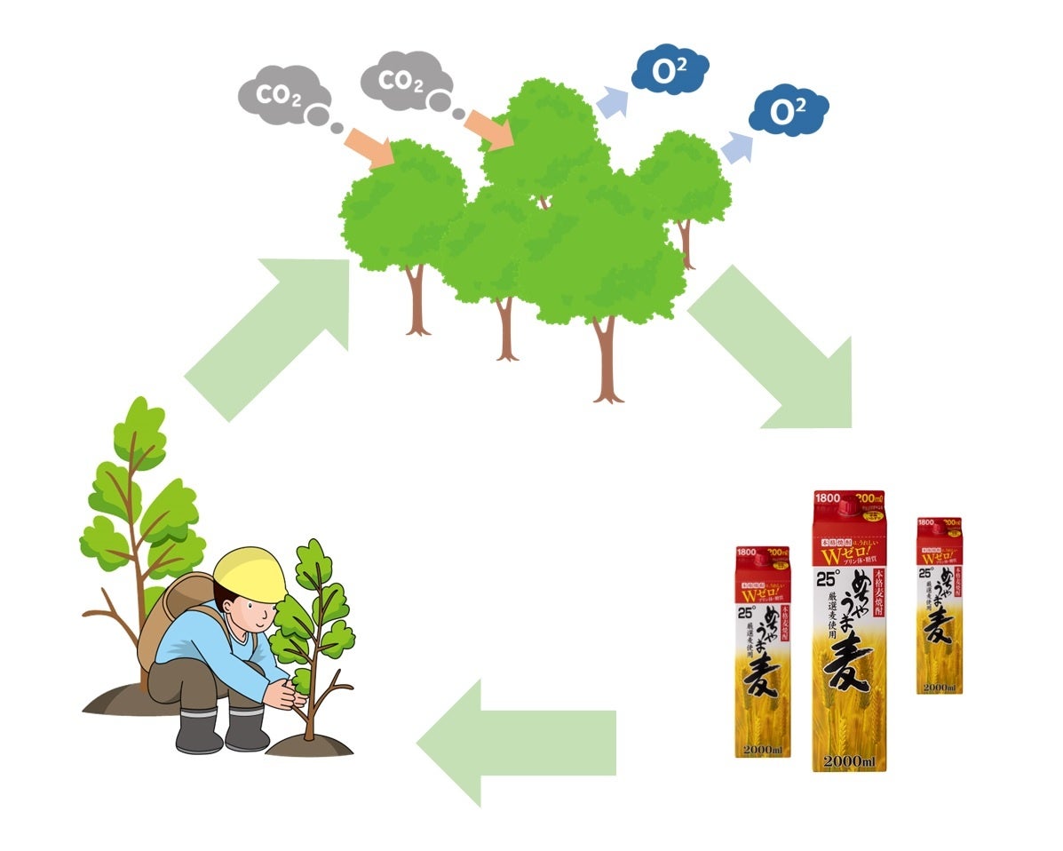 鷹正宗株式会社は2050年までに温室効果ガスの排出を全体としてゼロにする国内目標「カーボンニュートラル、脱炭素社会の実現」を目指す為、様々な取り組みを推進しております。その一環として弊社主力商品「本格焼酎めちゃうまシリーズ」について「めちゃうまグリーンサイクルプロジェクト」ととして脱炭素社会の実現に向けスタートします。