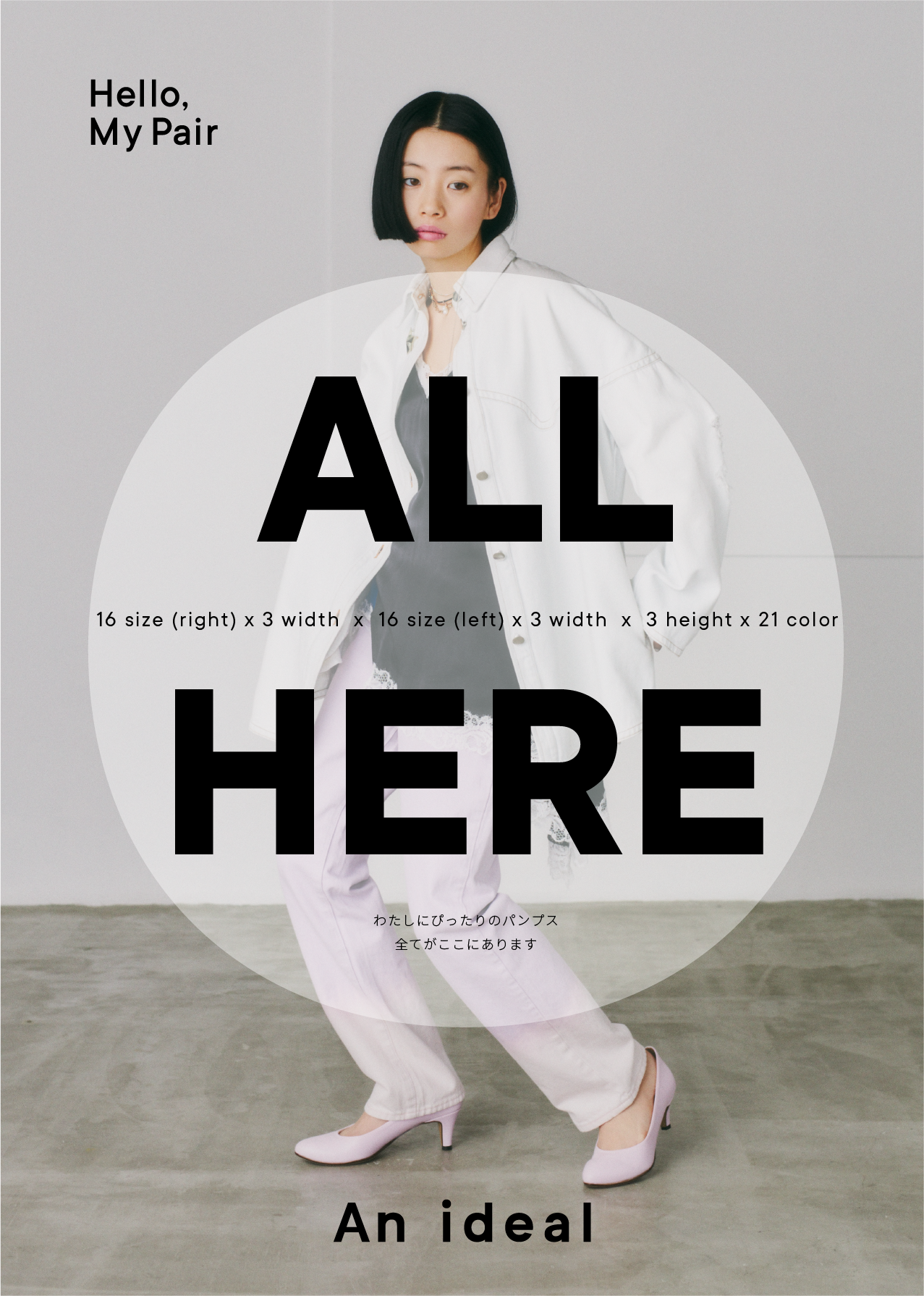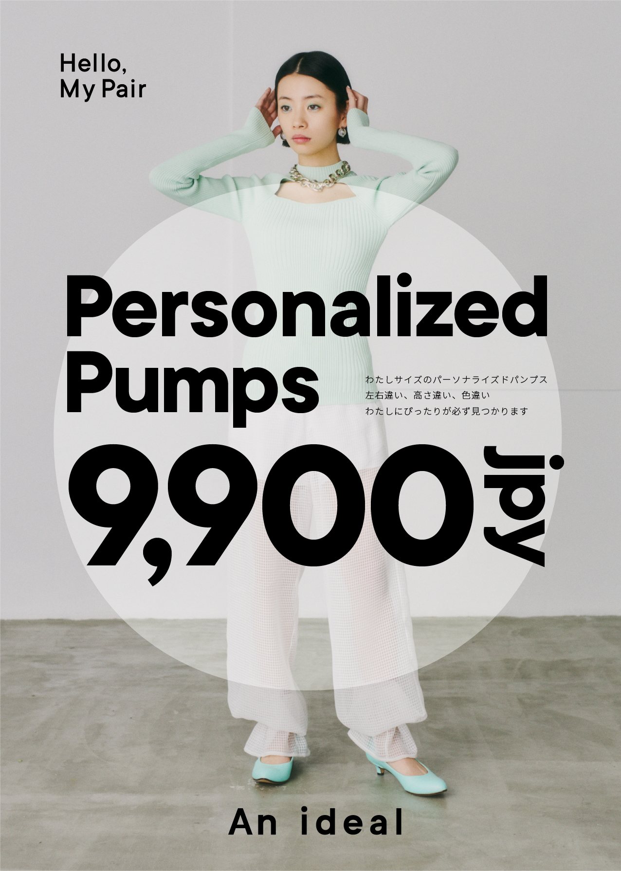 「An ideal」は、自分に合うサイズが分からず、どれを買っていいのか分からない、合うサイズがなくて困っているすべての方に“たくさんの選択肢”を提案していきたいという思いから生まれたセミオーダーパンプスです。約7年における研究開発で生み出した、最も履き心地の良い木型(靴の原型)をベースにつくられ、「サイズは小さいけど幅が広い」「サイズは大きいけど幅が細い」「左右の足の大きさが違う」など、既製品では対応できない大きさや、左右足長・足幅違いへの対応が可能です。また価格は、従来の一般的なセミオーダーパンプスよりも高いコストパフォーマンスの9,900円を実現しています。