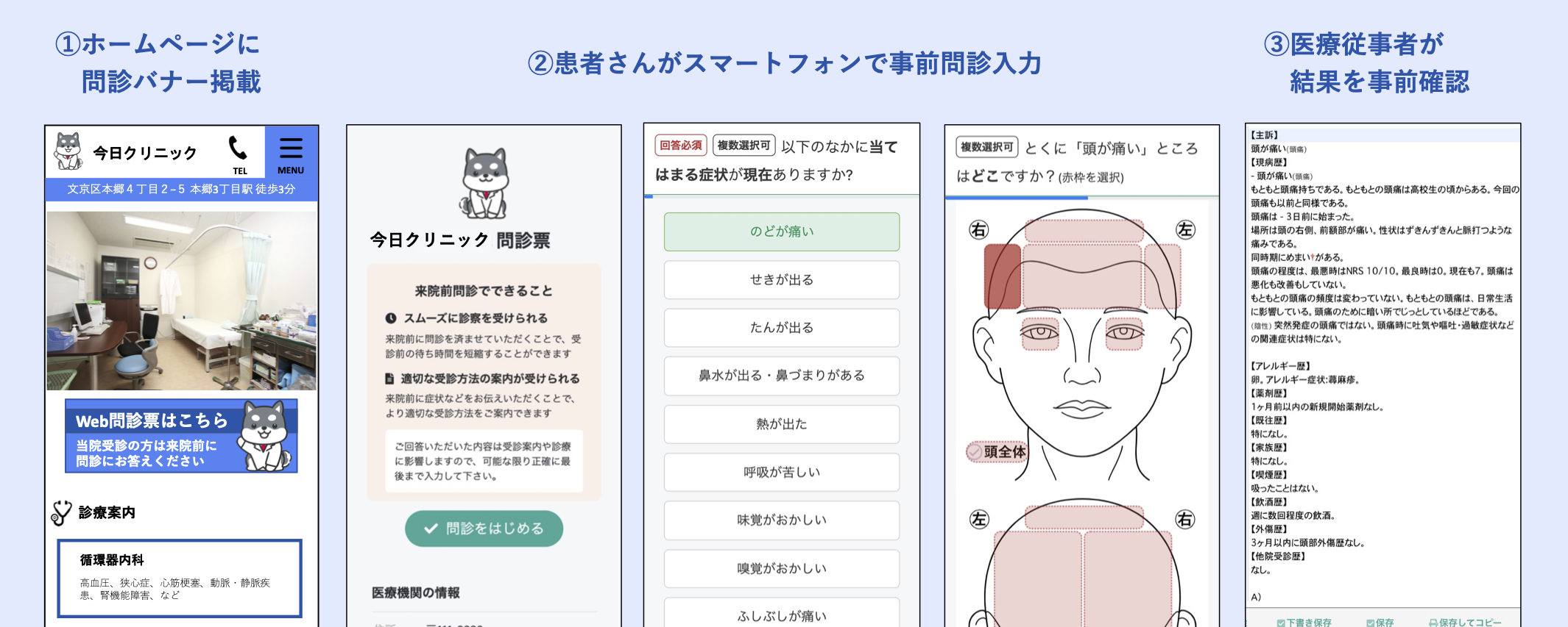 患者のスマートフォンから来院前の事前問診が可能、感染リスク軽減へ