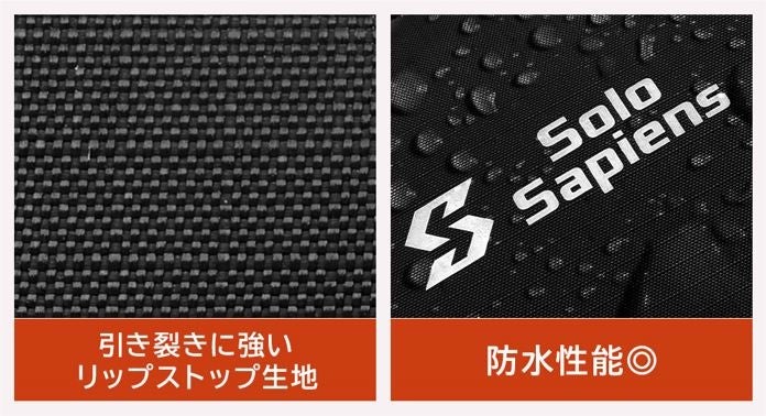 アウトドア用品に使われる、防水機能を備えたリップストップ生地を採用。引き裂きに強く耐久性に優れているのに、わずか270gと軽量です。