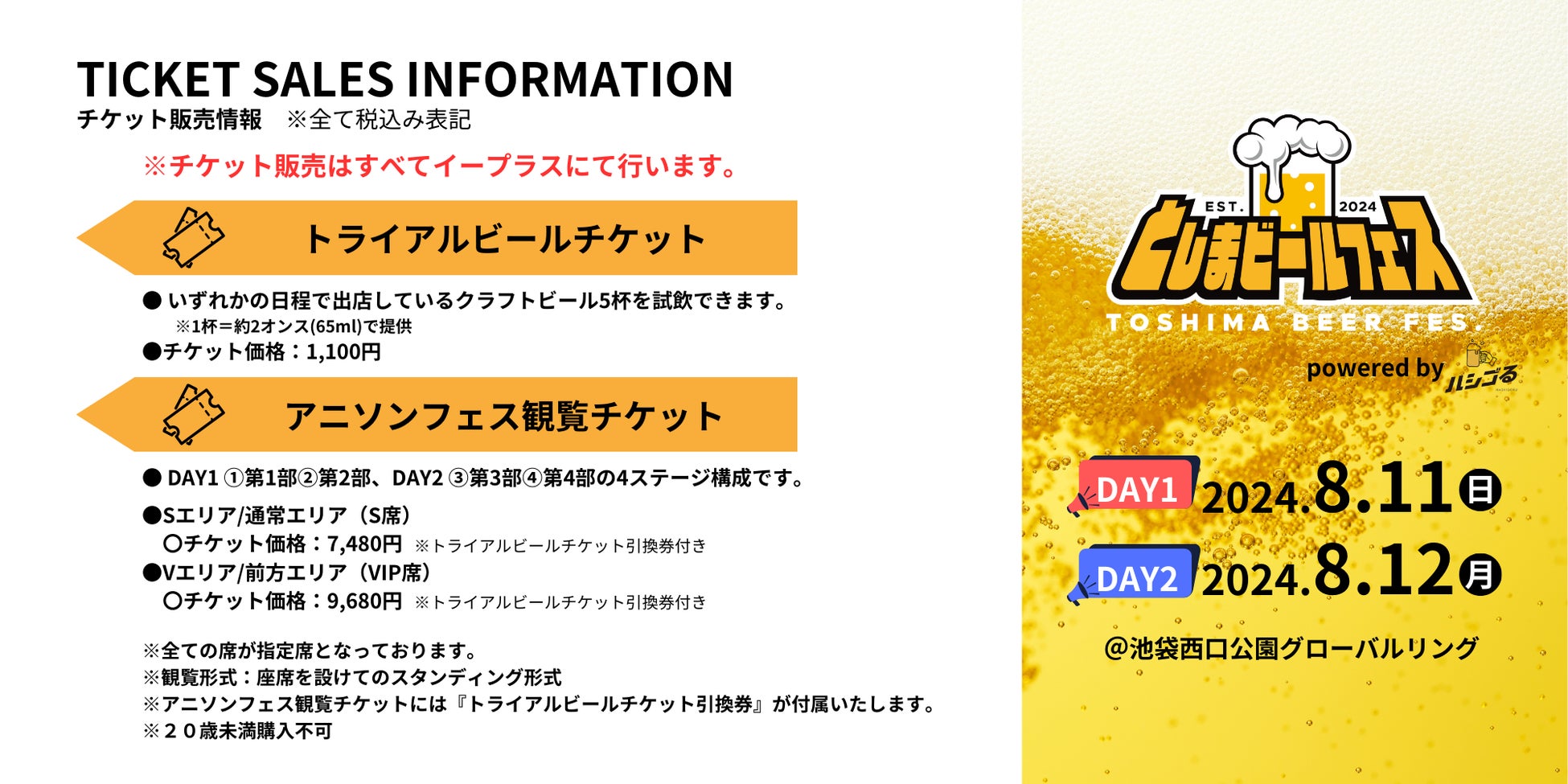 池袋で8月開催アニソンフェス『としまビールフェス』6/28までチケット抽選受付中!クラフトビールのちょい飲みチケットも販売中!