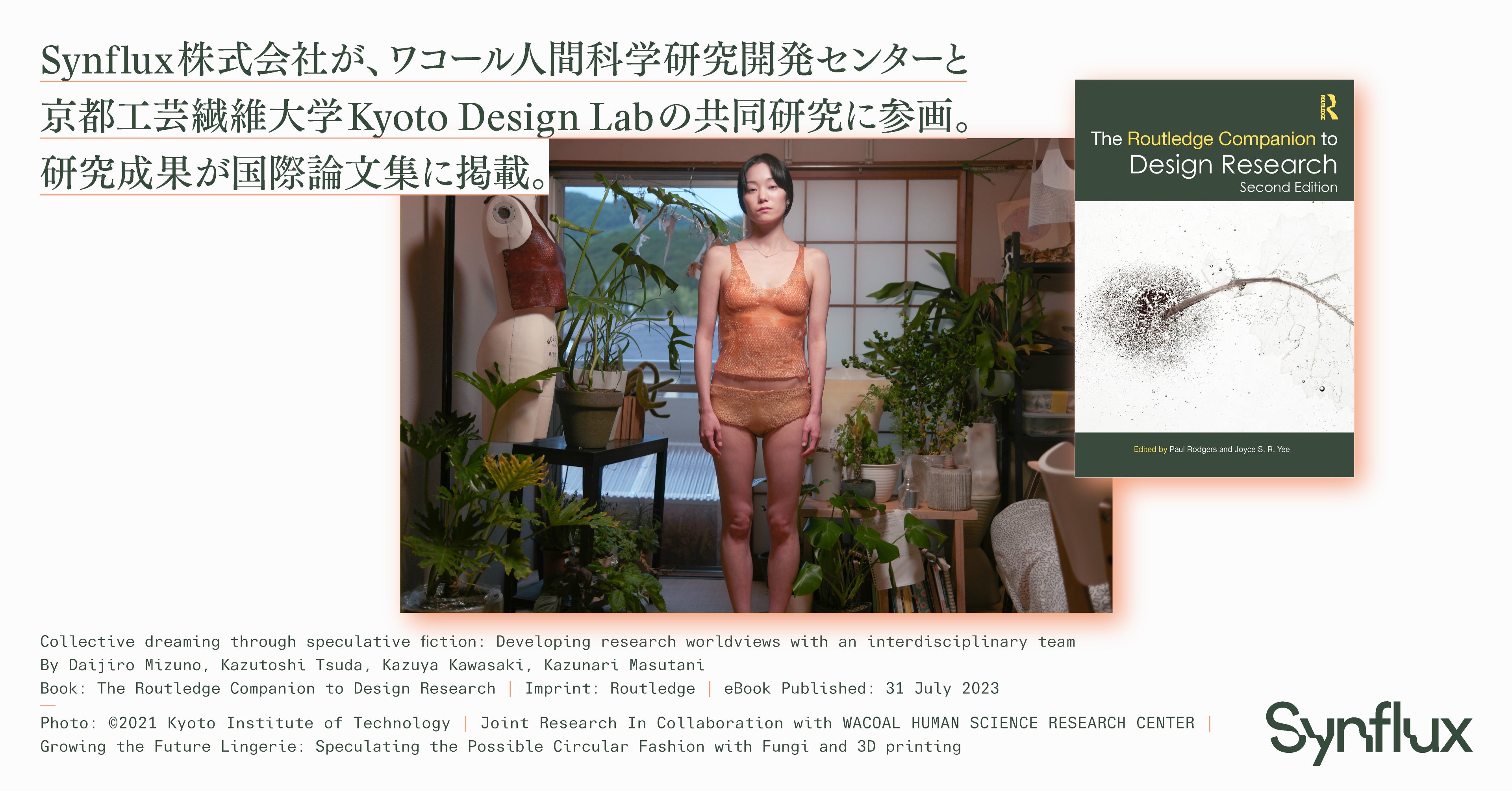 Synflux株式会社が、ワコール人間科学研究開発センターと京都工芸繊維大学Kyoto Design Labの共同研究「未来の下着」に参画。研究成果が国際論文集に掲載