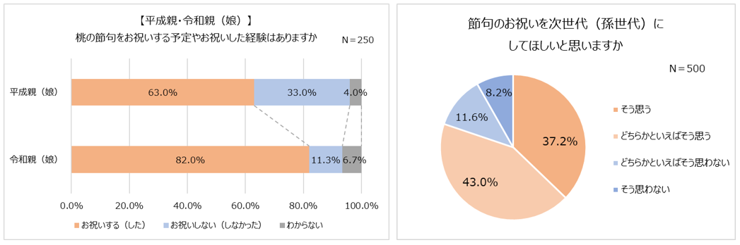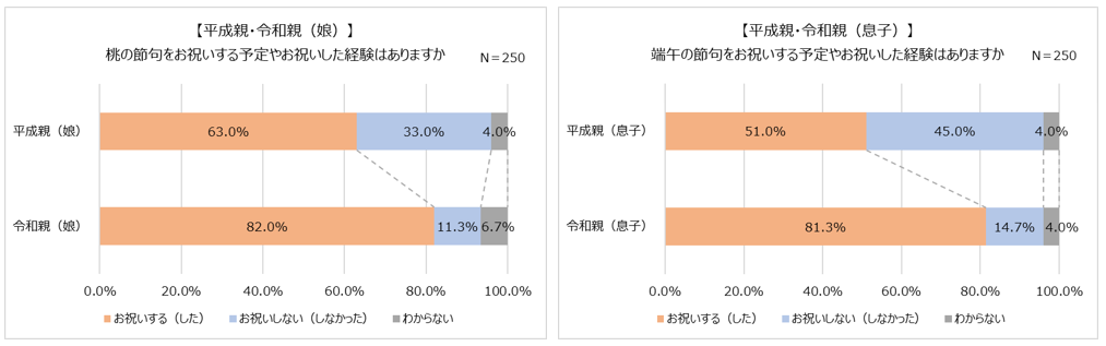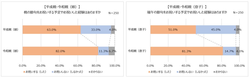 令和版“節句祝い”を大調査!令和の親8割以上が「桃・端午の節句」をお祝い。平成親・令和親ともに「家族のみ」での実施が主流。8割以上が節句祝いを次世代に残したい。