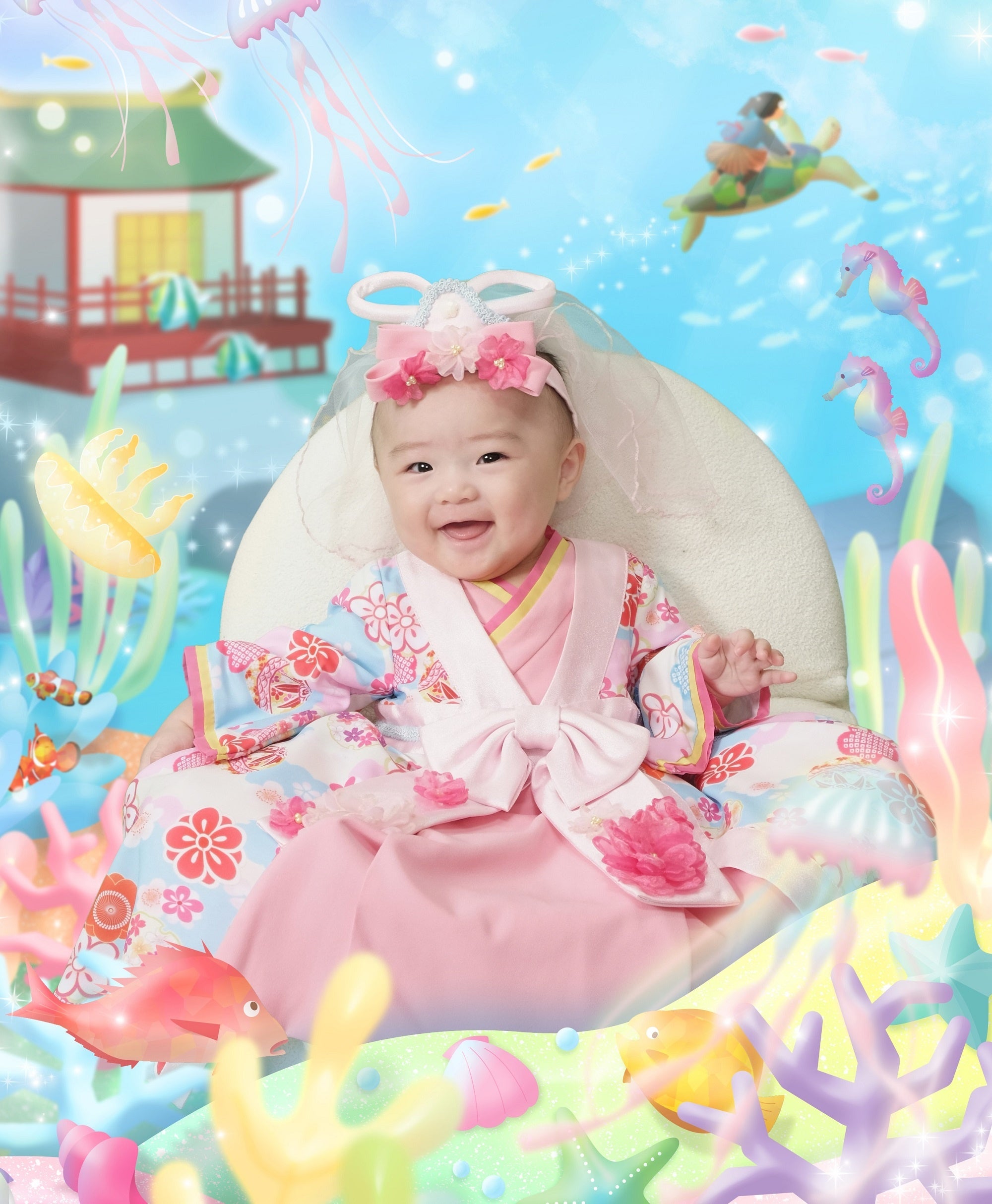 むかしばなし「浦島太郎」でおなじみの竜宮城のシーンを再現。パステル調のデザインが「乙姫」のかわいらしさを際立てます。