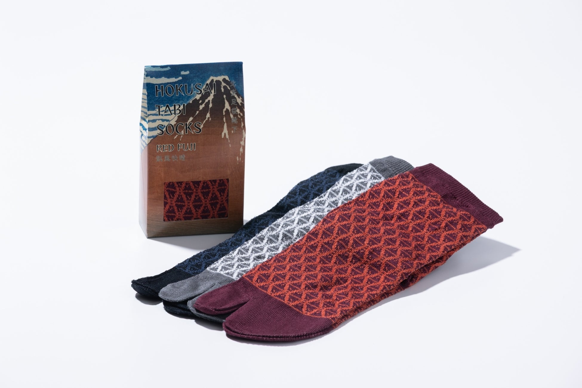 北斎ゆかりの地、墨田区亀沢に店舗「MERIKOTI」を構えるオレンジトーキョー株式会社から、江戸の巨匠・葛飾北斎の名作「富嶽三十六景」よりインスピレーションを得た足袋型ソックスが登場しました。