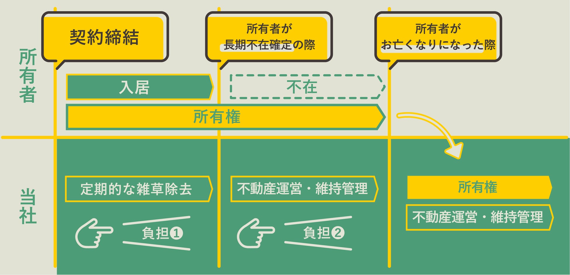 ▷不動産所有者(被相続人)は思い入れのある家を手放すことに抵抗がある一方、相続人は相続後の負担に不安を覚えるという、相反する二つのニーズに応えます。