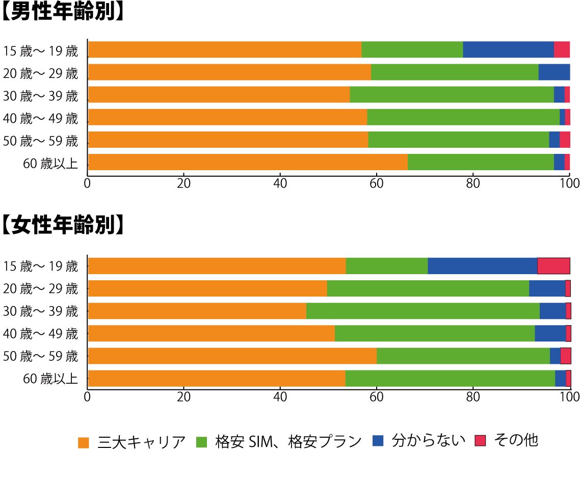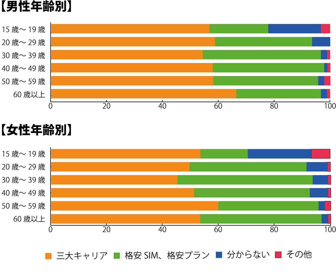 男女別だと女性の方が格安SIM、格安プランを積極的に利用しており、女性の節約意識の高さが目立つ結果になりました。