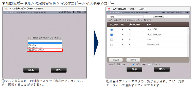 マスタ差分コピー(商品オプションマスタ)