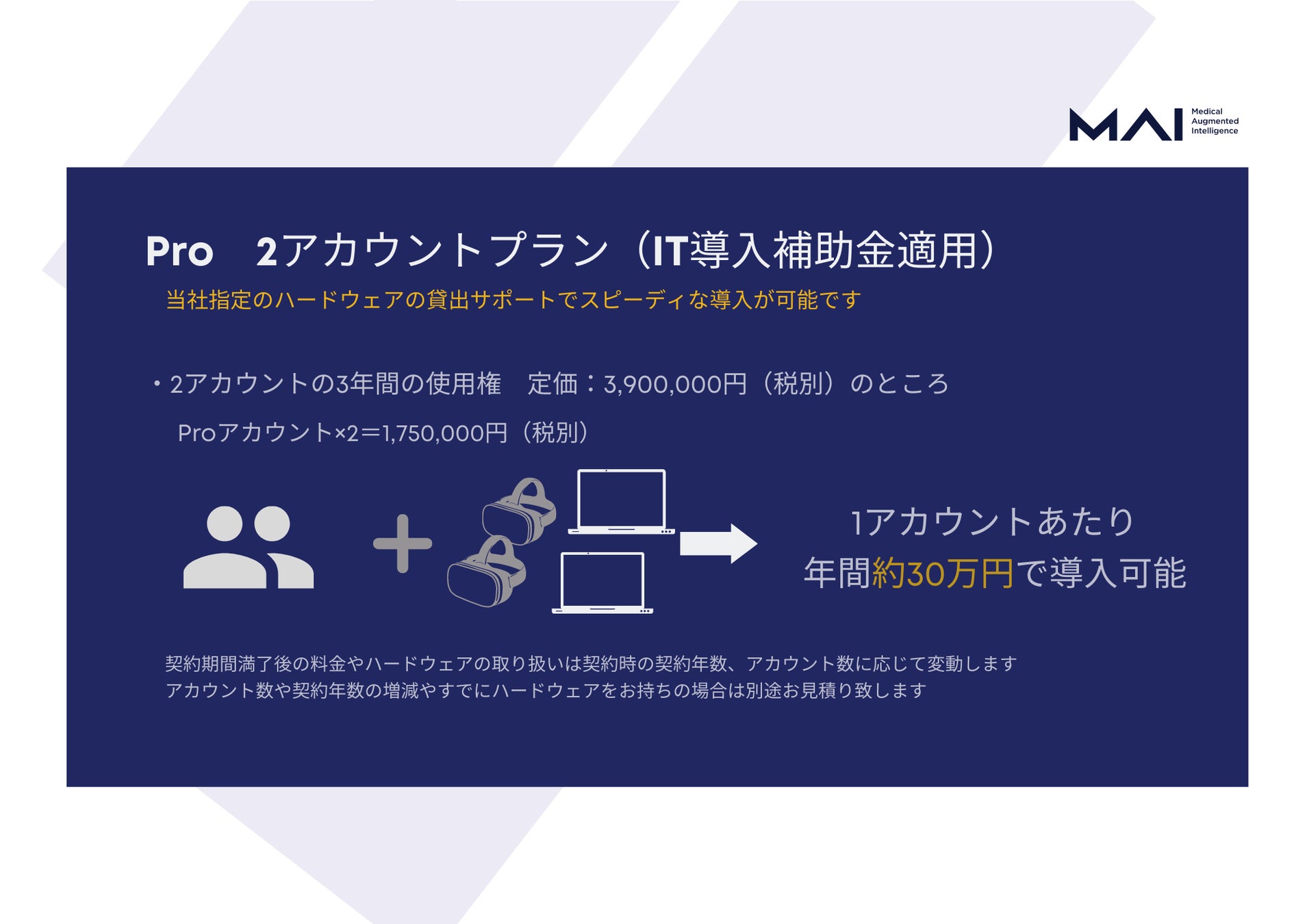 ソフトウェアを3年契約するとハードウェアがついてくるお得なプランです。
