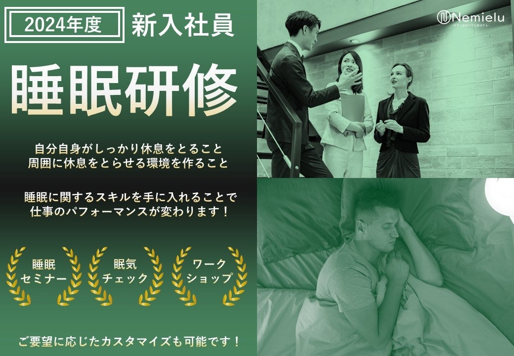 眠気解消サービス「Nemielu」を主軸にスリープテック事業を展開する株式会社ネミエル(本社:東京都新宿区 代表:松本光浩)はNemieluを活用した新入社員睡眠研修の提供を開始すると同時に、2024年度の新入社員睡眠研修の受付を開始しました。