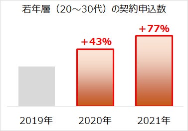 ・特に若年層(20~30代)の契約申込数の増加が顕著。