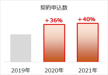・コロナ禍(2020年~2021年)での契約申込数はコロナ前(2019年)と比較して大きく増加。