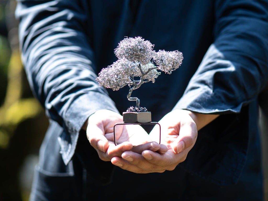 製造工程で出た排材を使い、自分だけのミニメタル盆栽を制作できます。