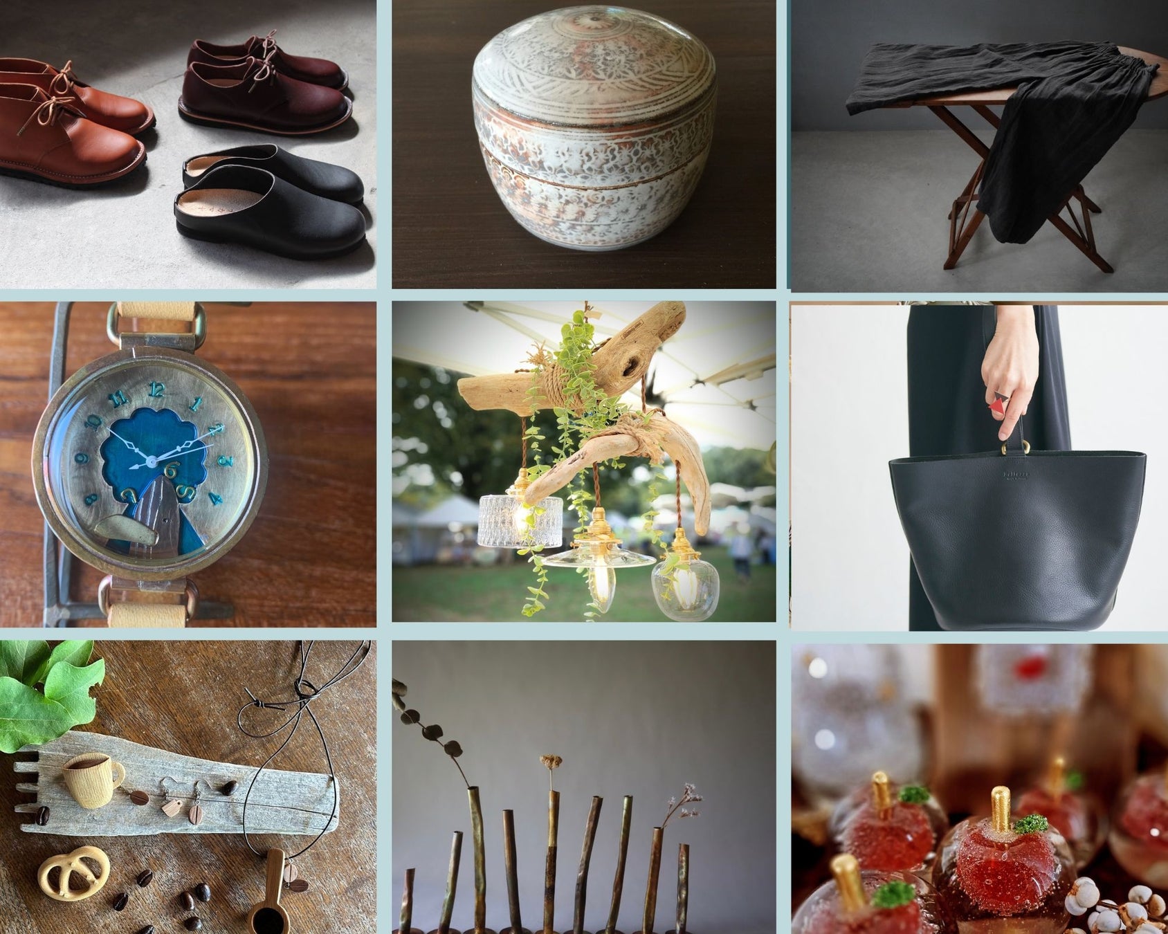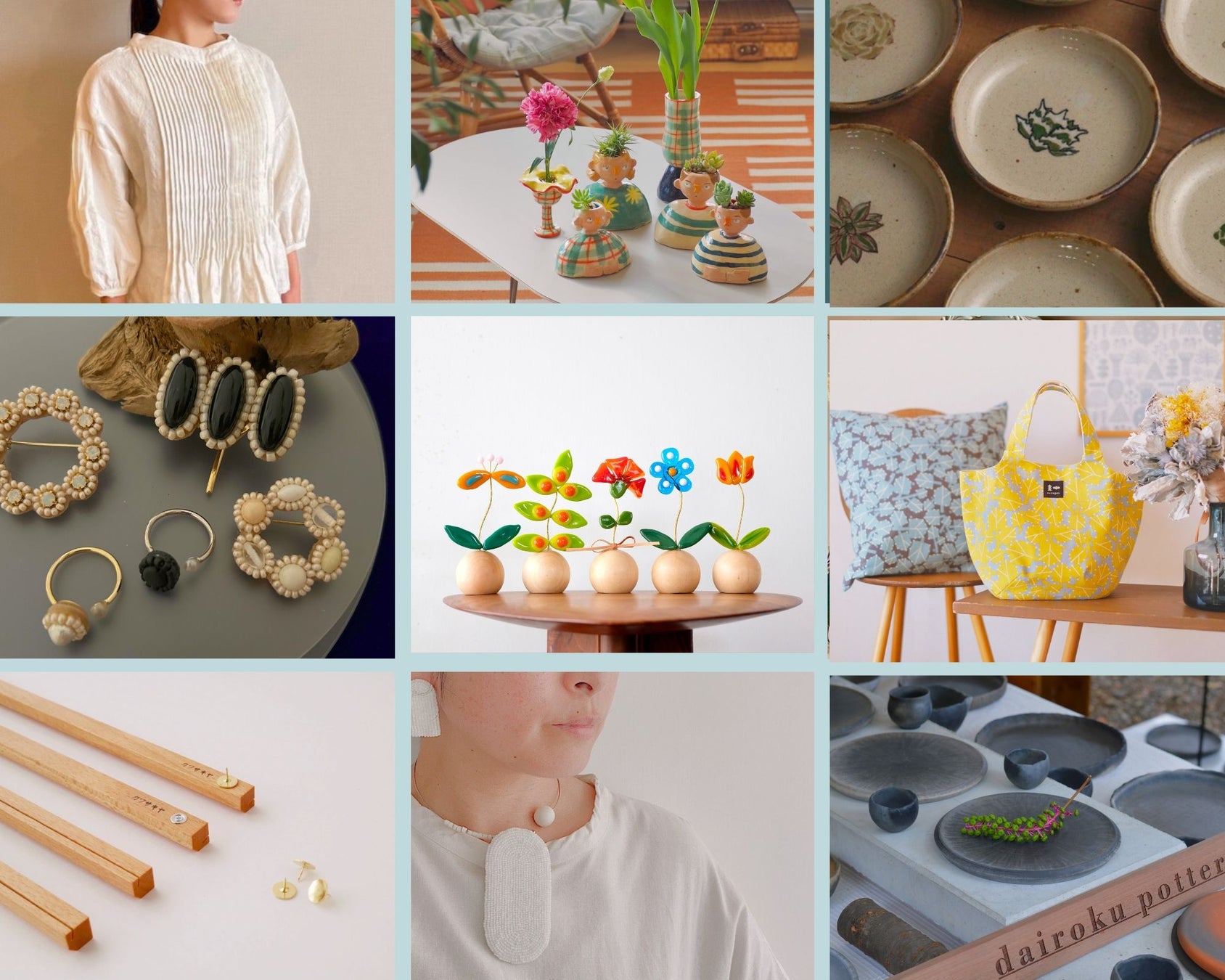 衣服・染織・木工・皮革・陶芸・金属・アクセサリー・植物など、職人の技が光る品々を手に取ってお楽しみいただけます。