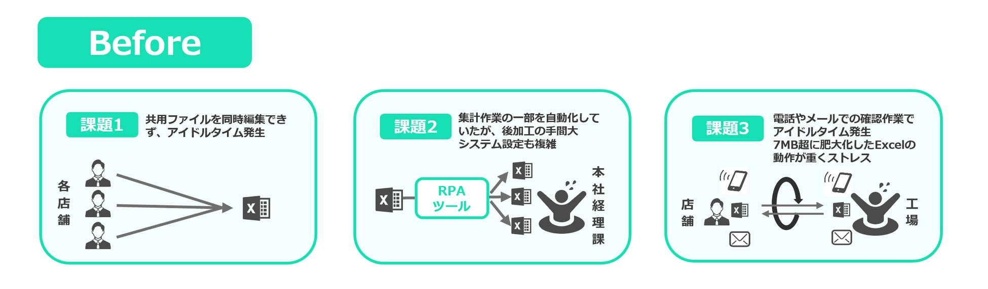 共有ファイル編集の待ち時間、肥大化したExcelの重い動作から解放され、集計作業や情報共有を効率化!