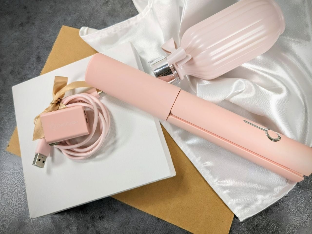 ⑤ 便利なUSB充電式コードレスヘアアイロン ※2ポートACアダプタ/充電ケーブル付属。