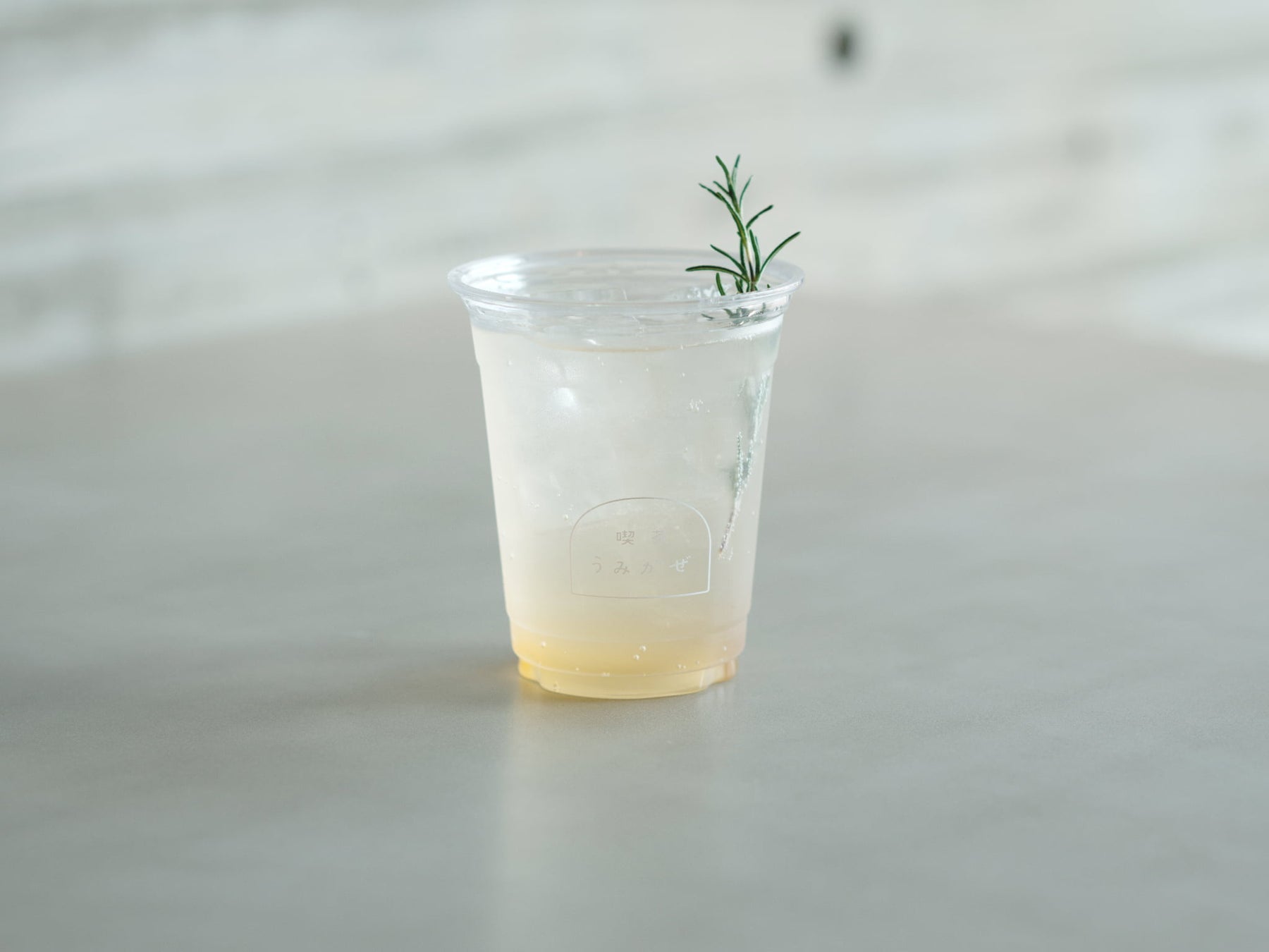 五島でとれるオーガニックのレモングラスを使った自家製のコーディアルドリンク。鼻に抜けるレモングラスの優しい香りが特徴です。
