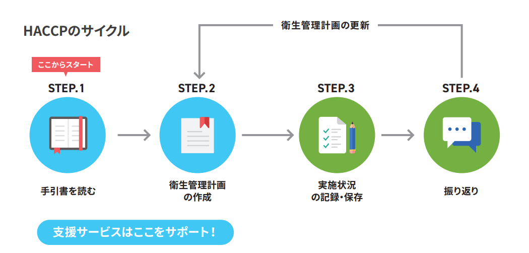 ②の工程を元に、衛生管理計画の作成支援を行います。