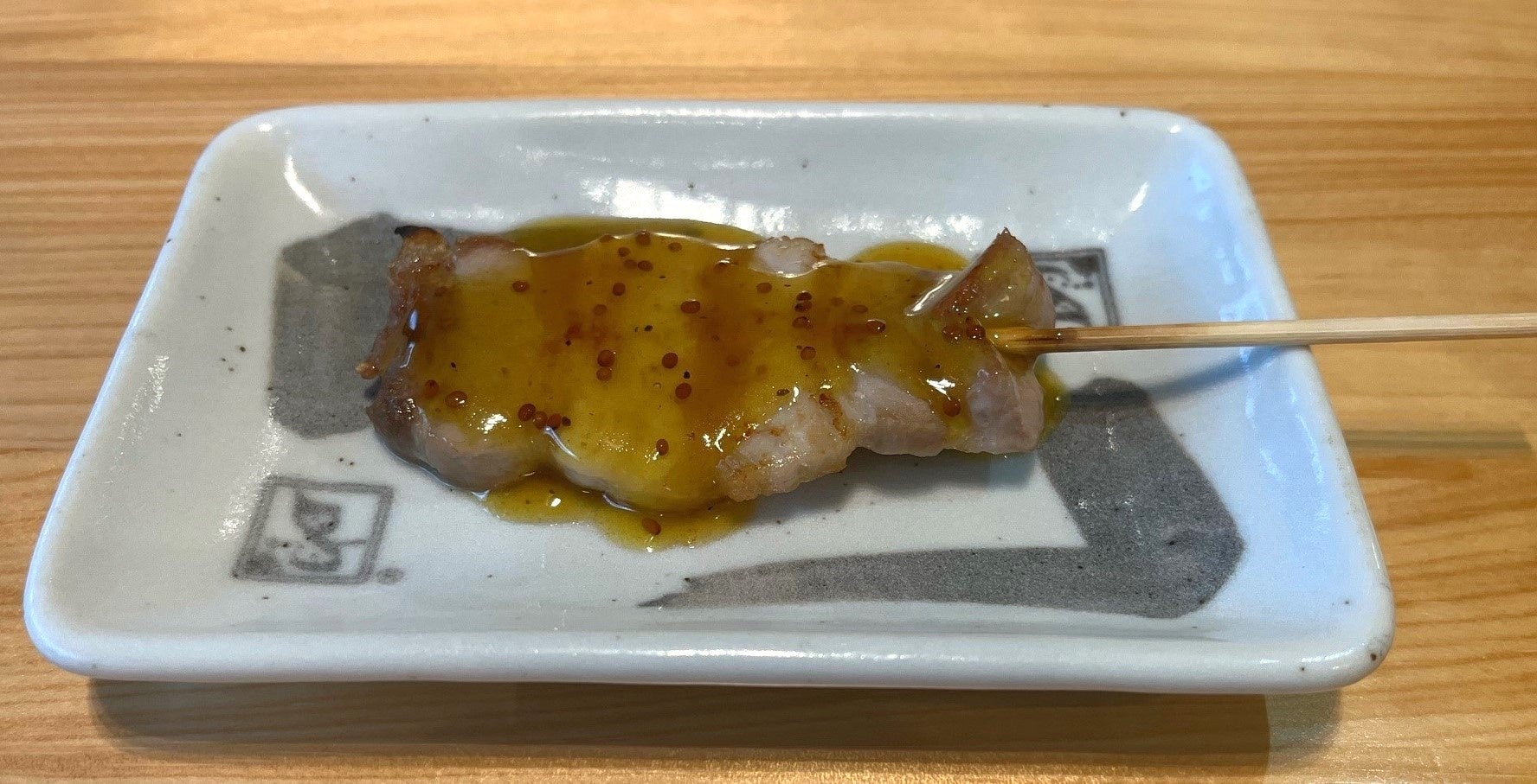 食べ応えのある豚のバラ肉を使用。脂の旨味と、ハニーマスタードの甘酸っぱい味わいが絶妙な一串。