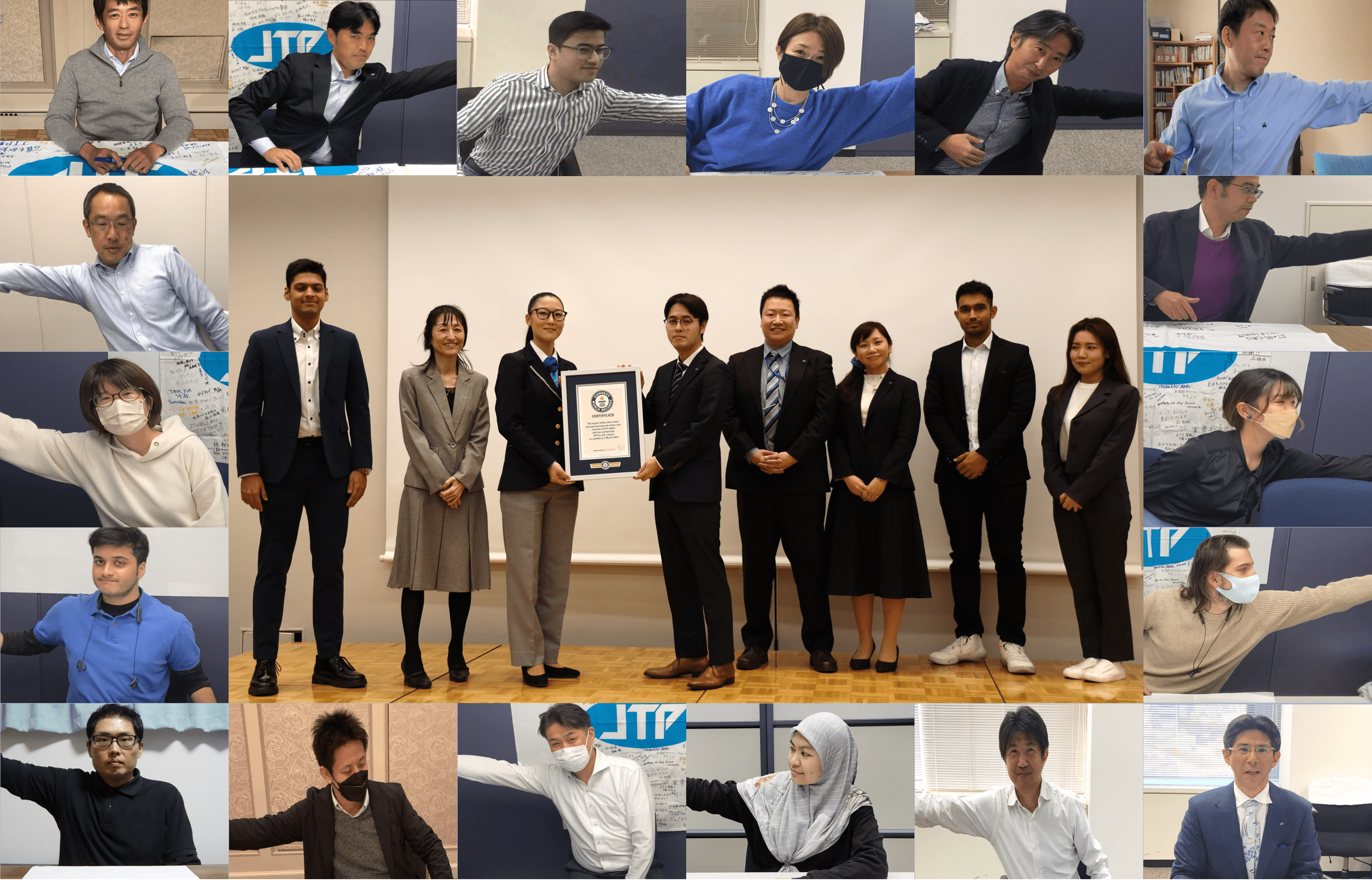 今回のギネス世界記録への挑戦は、JTP株式会社が2022年10月に設立35周年を迎えたことを記念し、社内エンゲージメント向上を目的として、従業員およびその御家族が参加して実施されました。