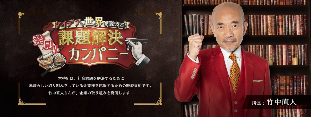 本番組では、“世界を変える可能性を秘めたアイデア”を持つ企業を発掘。竹中直人さんが、アイデア研究所の所⻑として、企業の担当者と対談。