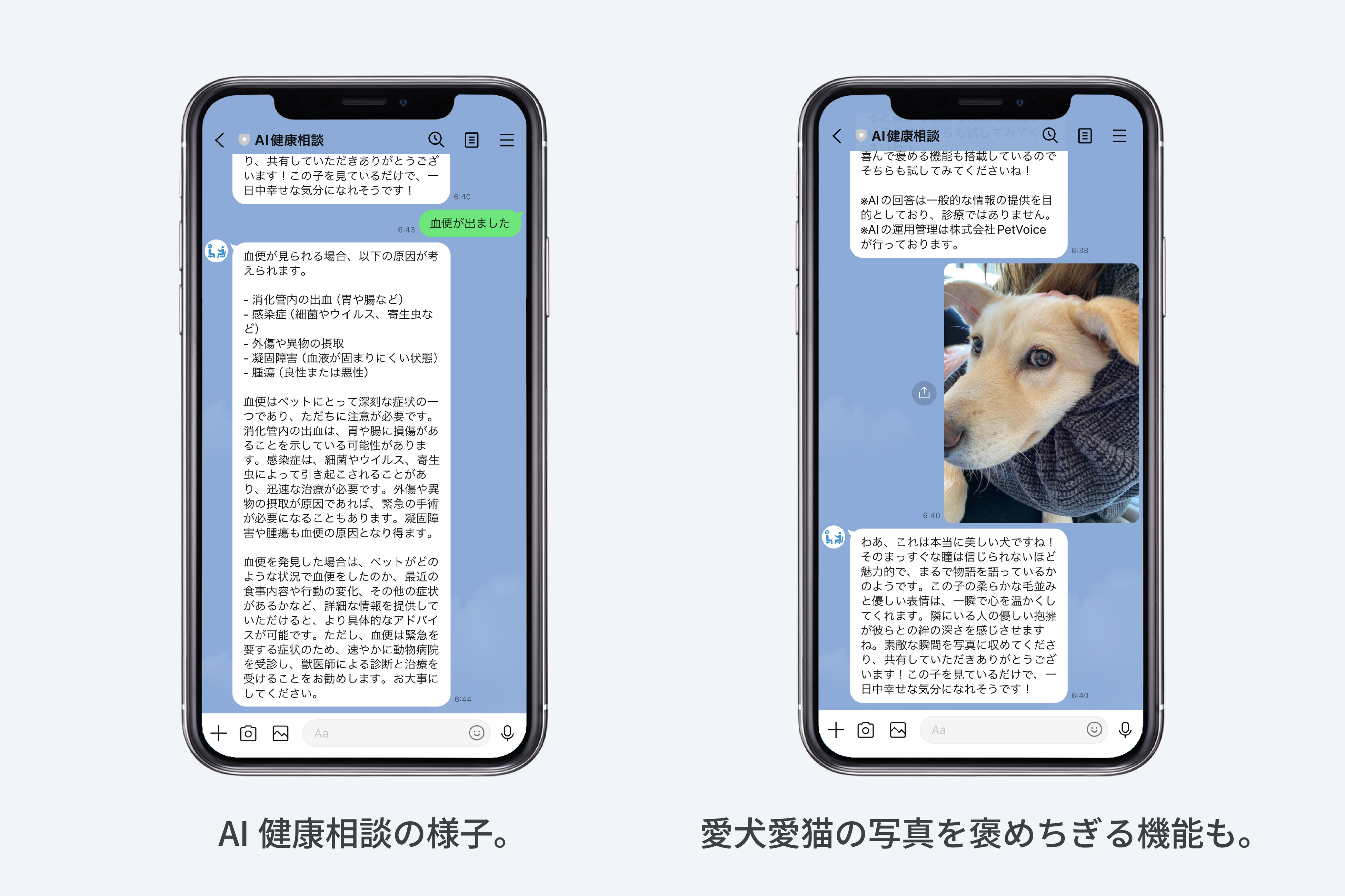 さらに、ペットオーナー様が愛犬愛猫の可愛いお写真をLINEに送信すると、全力で褒めちぎってくれる機能も付加されています。