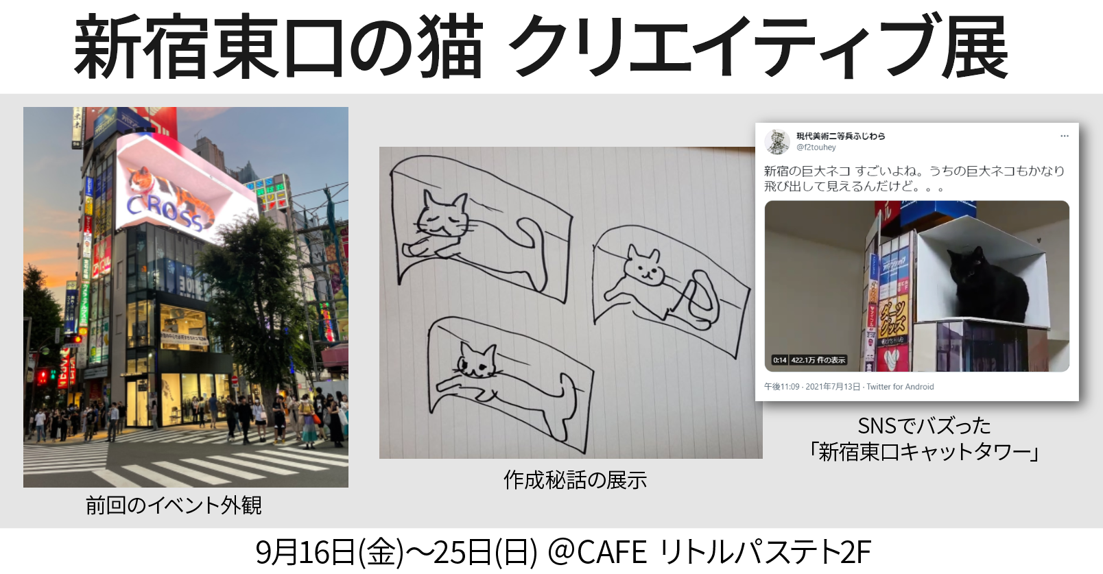 このたびの「第25回文化庁メディア芸術祭」における受賞を祝し、第25回文化庁メディア芸術祭協賛事業として「新宿東口の猫のクリエイティブ展」を開催します。