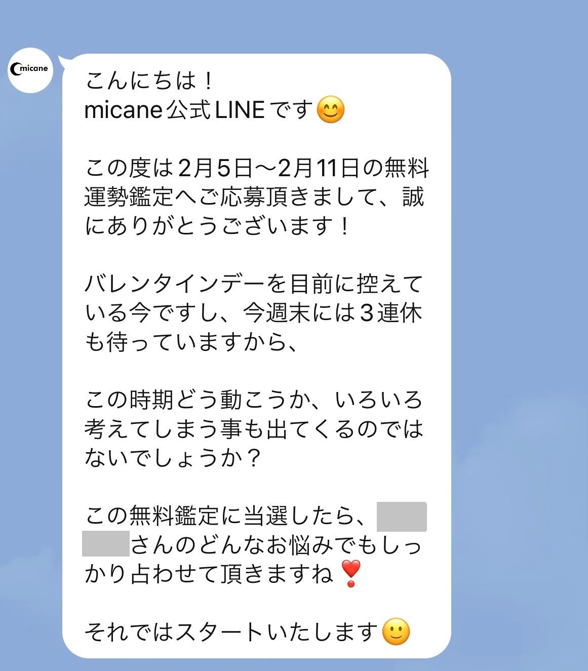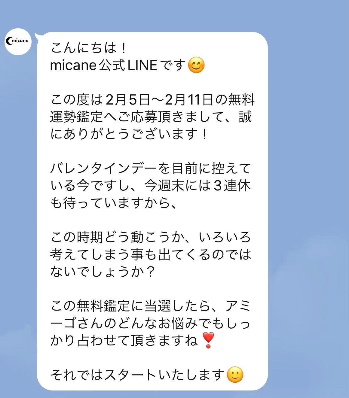 ▼micane公式LINE@に友だち登録で今週の運勢(2月5日~2月11日)を無料で占う!▼