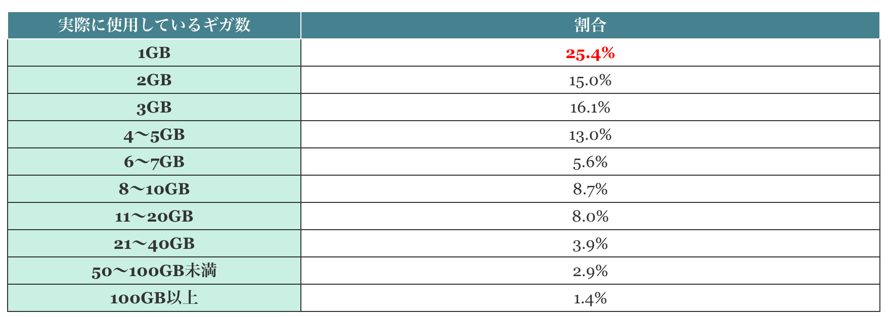 スマホで実際に使用しているギガ数を調査したところ、以下の結果となりました。