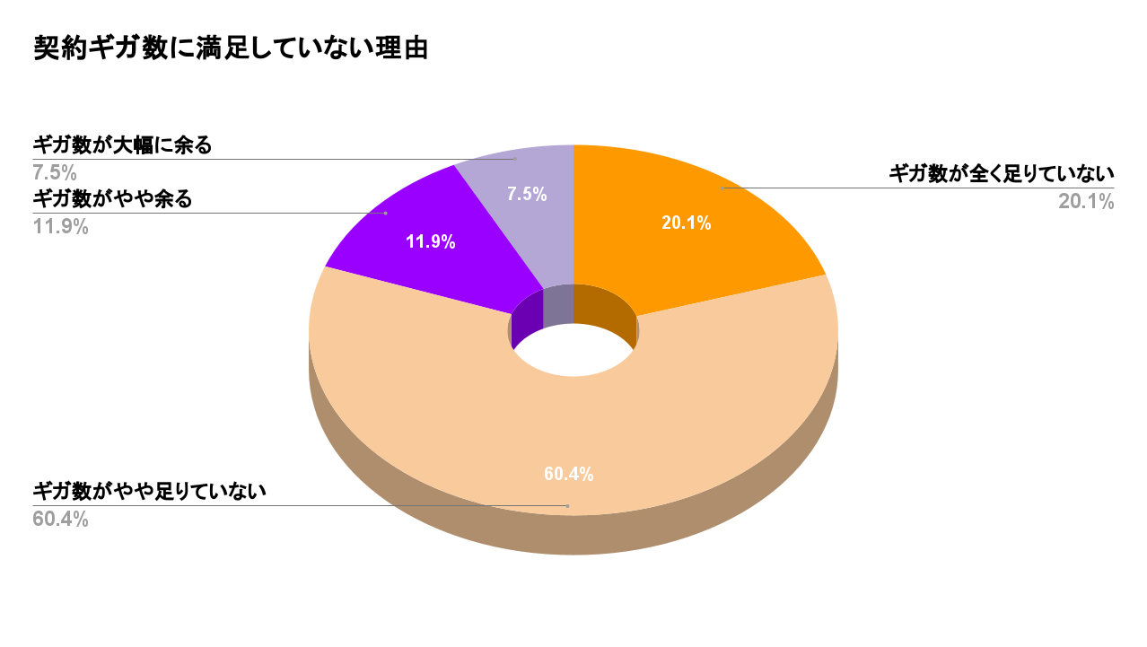 満足していない理由の半数以上は「ギガ数が足りていない」