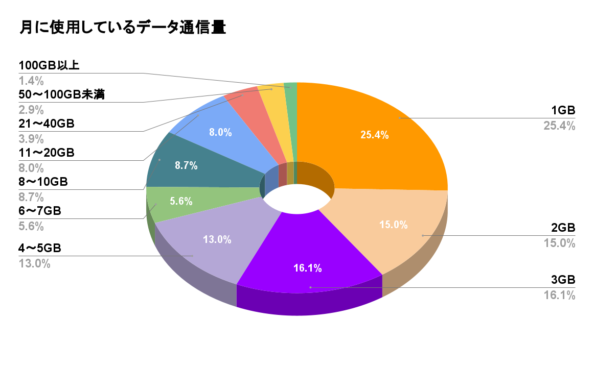 月に使用しているスマホギガ数で最も多いのは1GBで25.4%