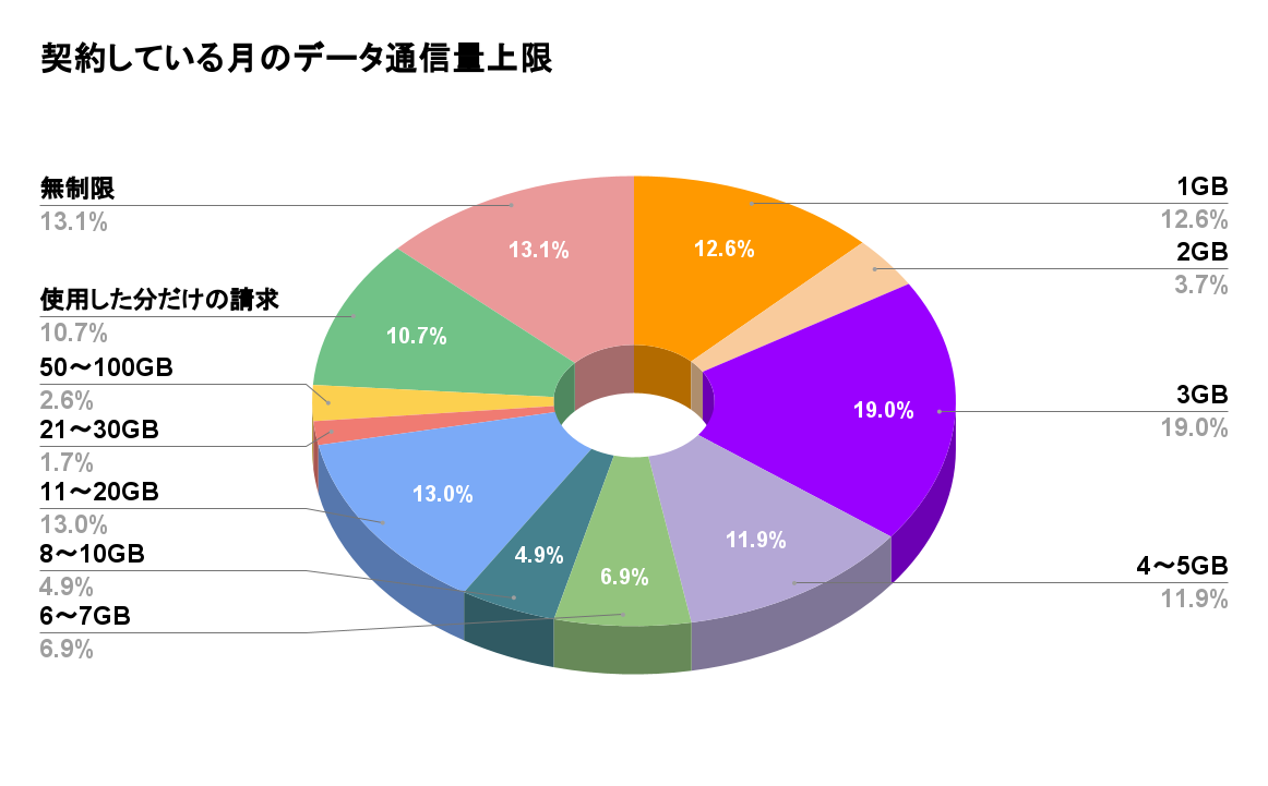 契約している月間スマホギガ数で最も多いのは3GBで19.0%