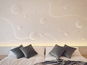 客室内の壁一面に漆喰アートがデザインされています。