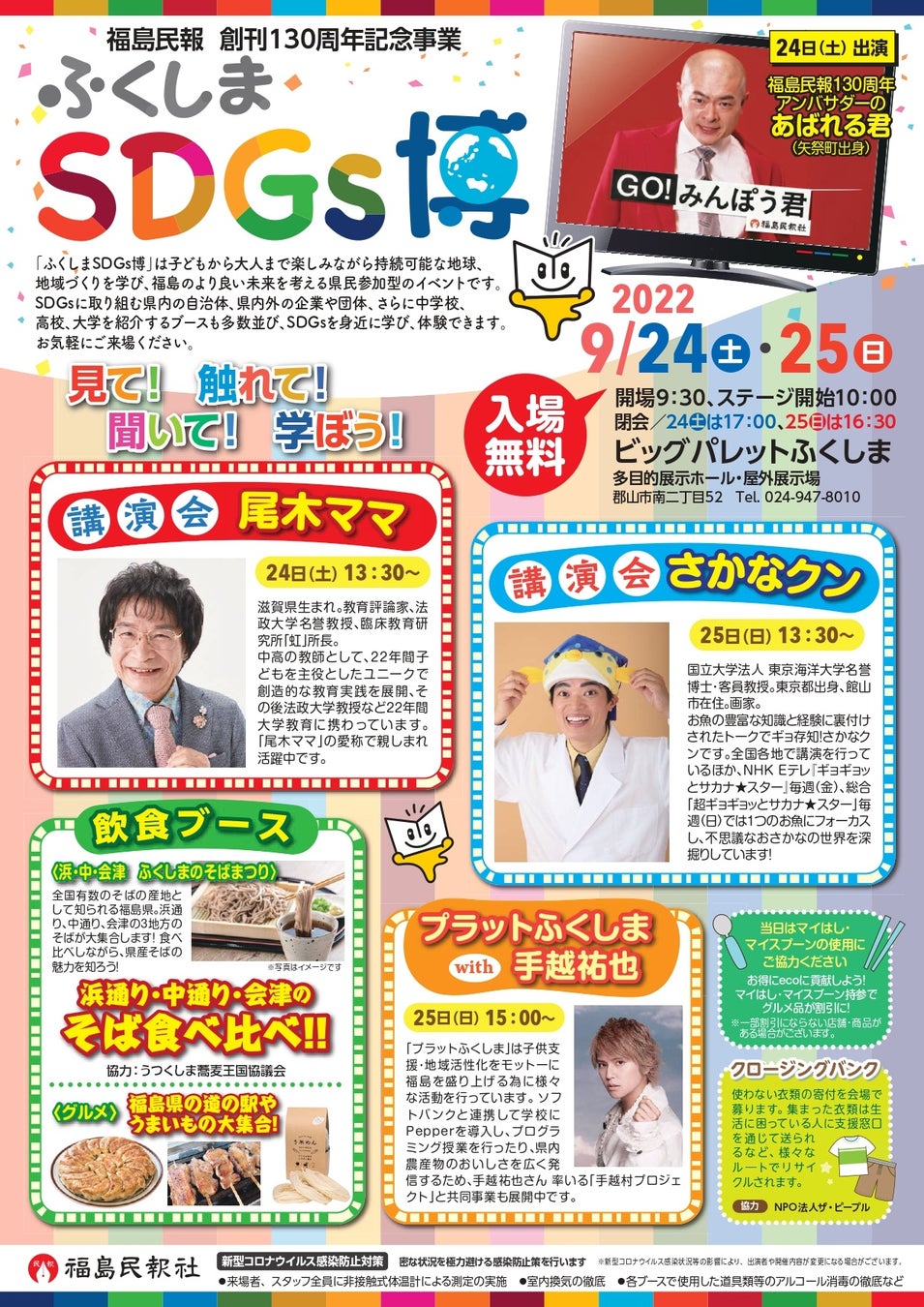 福島民報社創刊130周年記念事業「ふくしまSDGs博」が9月24日、25日、福島県郡山市のビッグパレットふくしまで開催!手越祐也さんが25日に来場します!