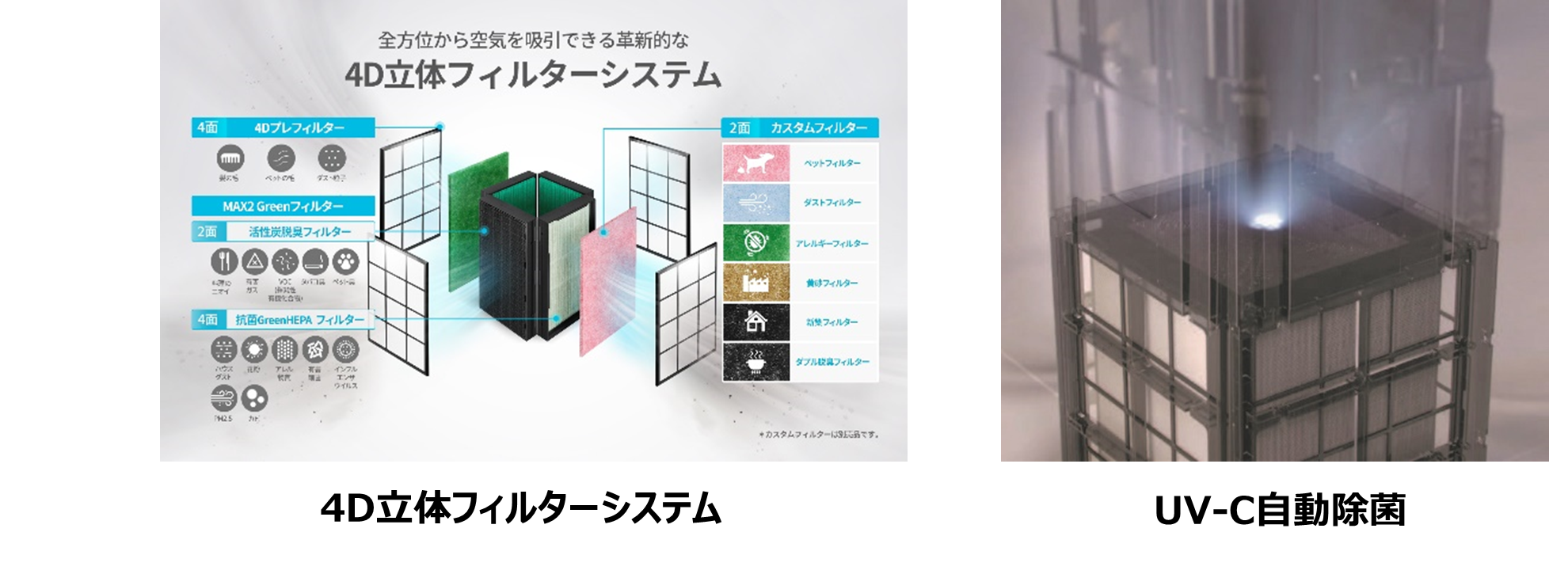 - 全方位から空気を吸引し、汚れた空気を効果的に浄化する4D立体フィルターシステム