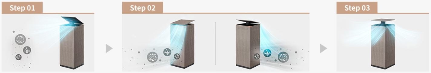 - ポップアップモーションで360°部屋中にきれいな空気を送り出す4D立体清浄システム