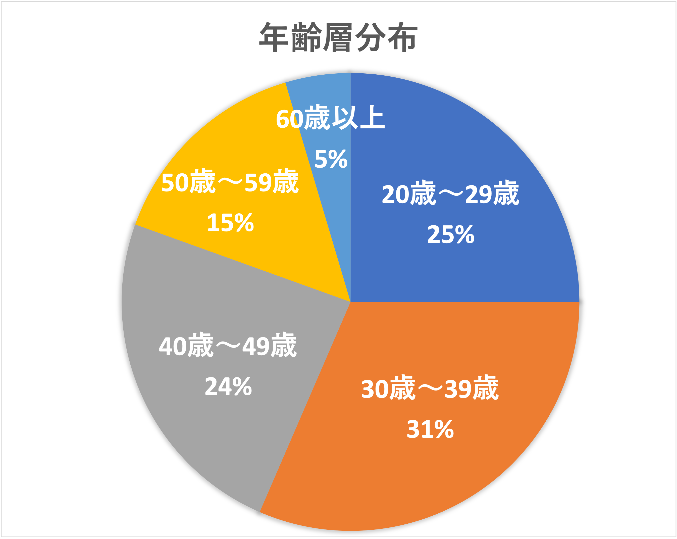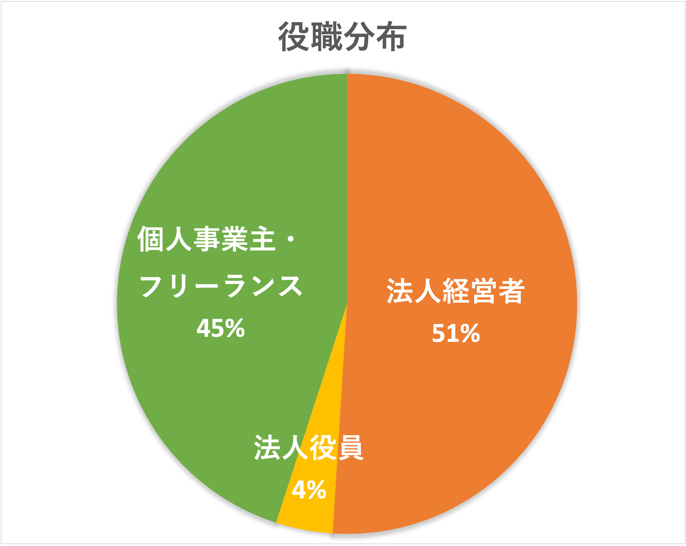 これまでの登録ユーザーの属性はグラフのとおり、20代〜30代の若手経営者・フリーランスの登録が多い傾向があり、若い経営者・起業家を中心に、異業種交流会や名刺交換会などのオフラインでの交流活動に代わって、オンラインによる商談や営業活動、人脈構築の機会を提供するツールとして、「ビジネスマッチングアプリ」が企業活動にも定着しつつあることがうかがえます。