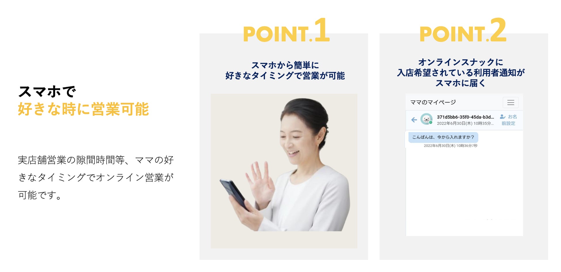 - スナックママの好きなタイミングで営業可能!「実店舗とオンラインの併用」を実現する新機能