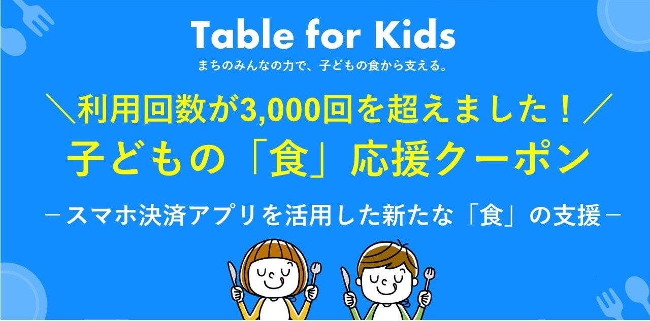 子どもの「食」応援クーポンの利用回数が3,000回を超えました! ~スマホ決済アプリを活用した新たな食の支援「Table for Kids」