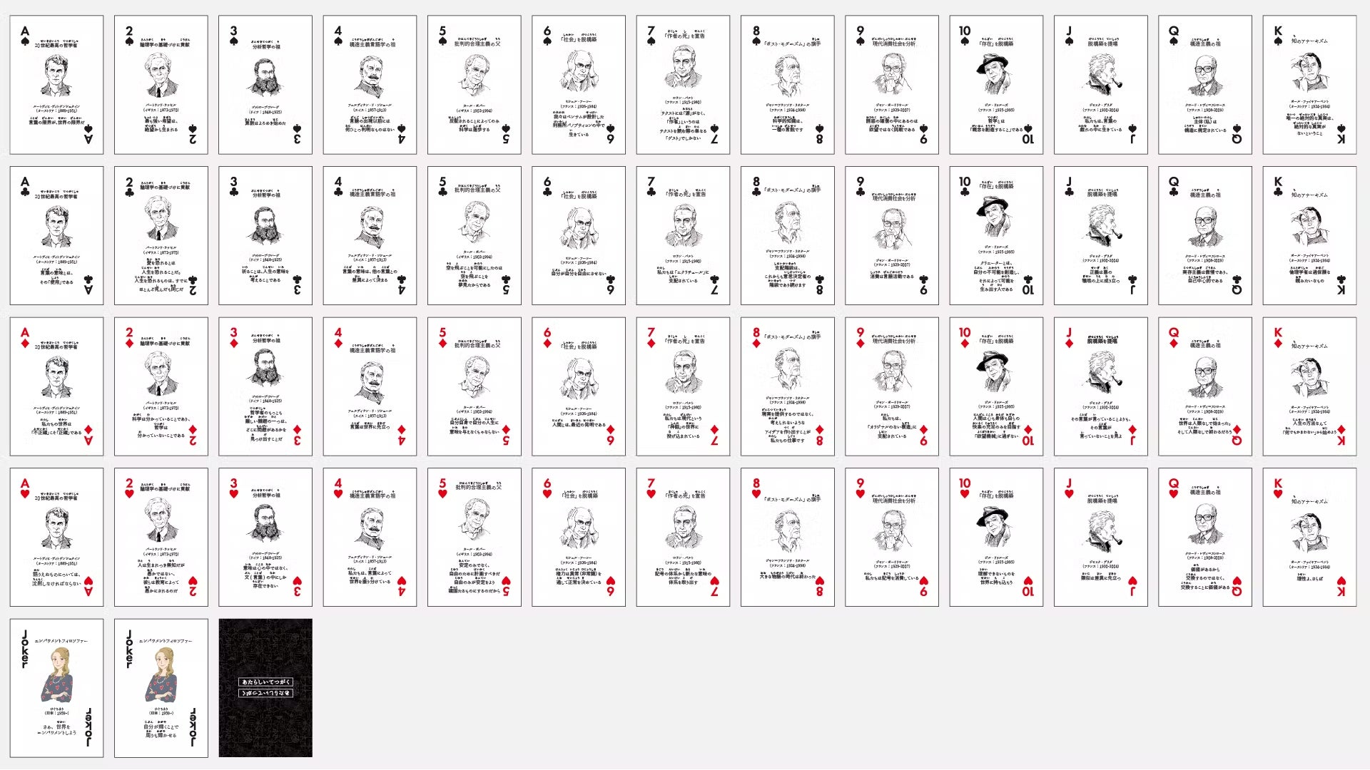 遊び方は無限大!哲学を学んだ事がない方にも「哲学すること」の楽しさに触れてもらうことを目的に「哲学者トランプ」が誕生しました。
