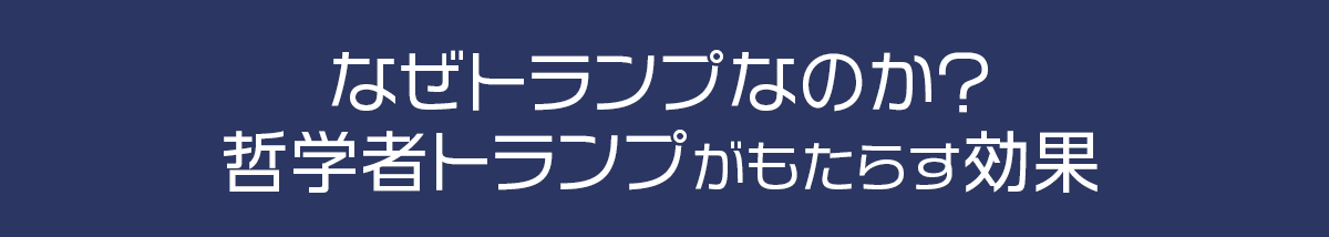 この哲学者トランプが、老若男女とわず、一人でも多くの人が、知の巨人の言葉にふれ、思考の枠をひろげ、「当たり前」に疑問をもつことで、「思考力、創造力、言語化力」を磨く機会になれば幸いです。