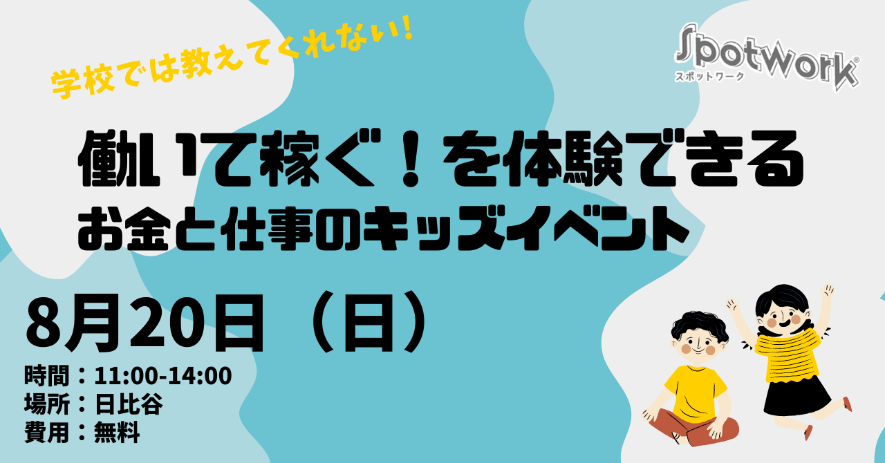 【夏休み体験イベント】お仕事体験を通じて「はたらく」と「お金」を学ぶ親子向けのイベントを8月20日(日曜日)に開催