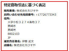 特定商取引法に基づく表記販売業者:株式会社えびすや
