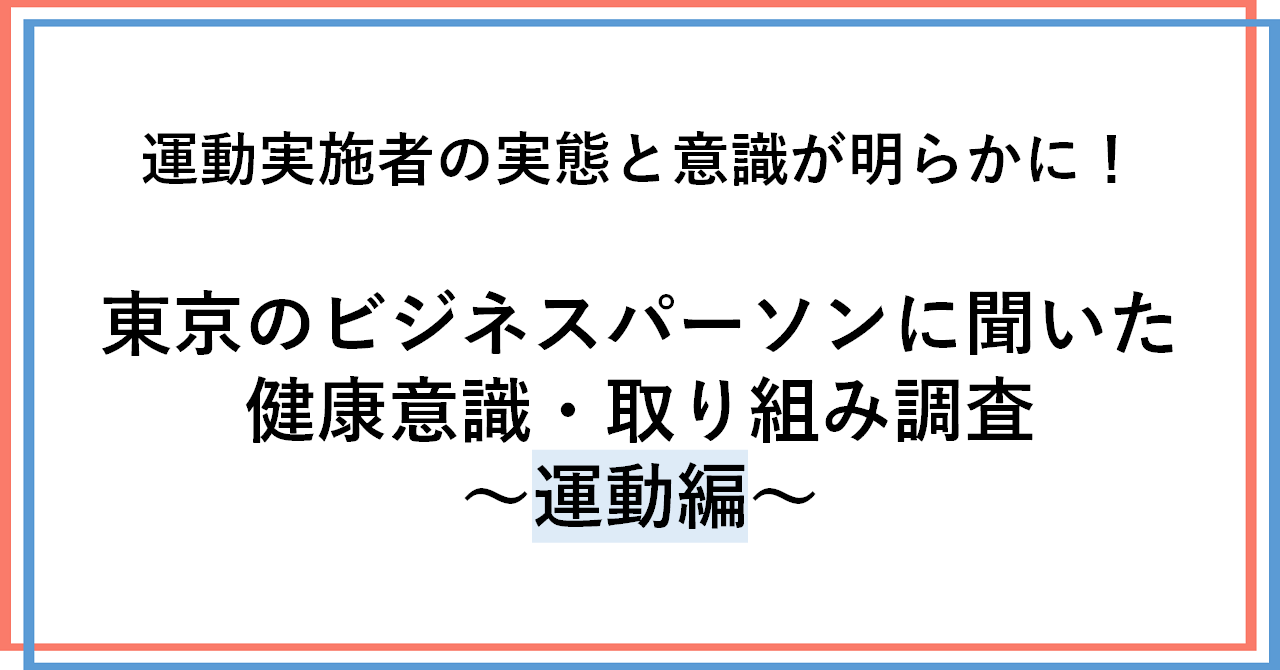 運動実施者の実態と意識が明らかに!東京のビジネスパーソンに聞いた健康意識・取り組み調査~運動編~