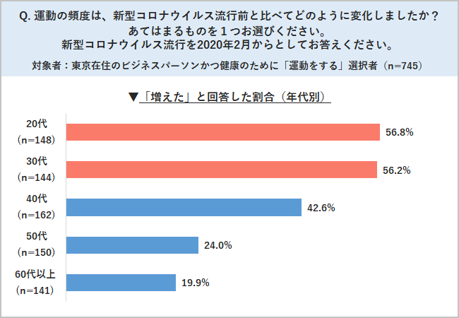 - 運動頻度が高い年代は?コロナ前後での頻度の変化は?