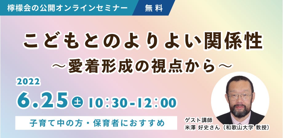 社会福祉法人 檸檬会の公開オンラインセミナー「こどもとのよりよい関係性~愛着形成の視点から~」