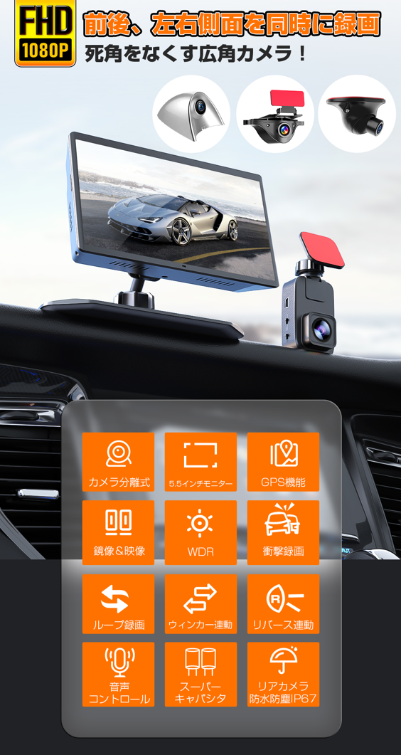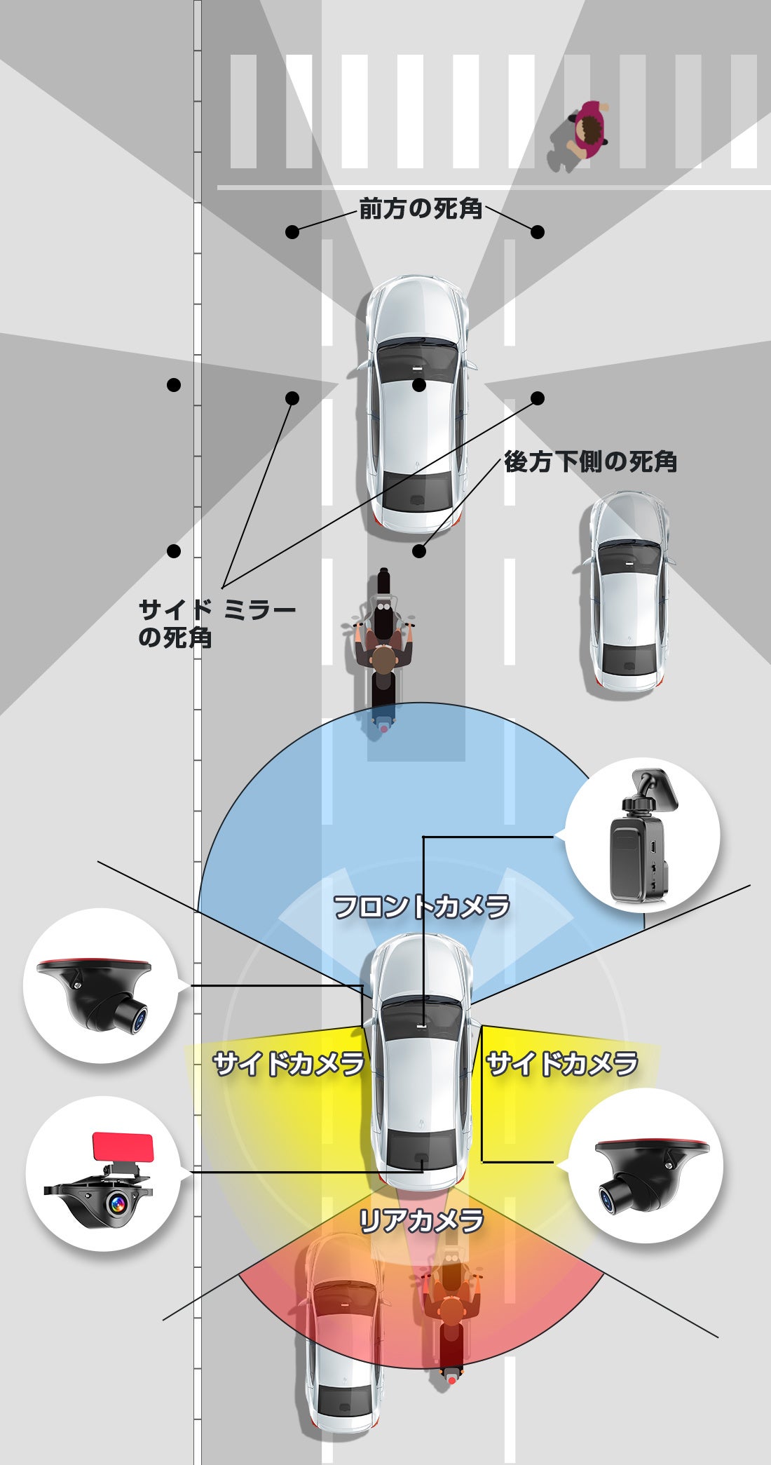 近づく危険を捉える!高画質に前・後・左側・右側は同時に録画でき、視界向上のドライブレコーダー【最大4カメラ対応】Makuake(マクアケ)で先行予約販売スタート。