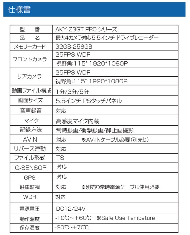 なるべくドライバーの視野の死角を減らすため、AKEEYO最新機種「AKY-Z3GT PRO」ドライブレコーダー誕生。最大4カメラ対応、前・後・左側・右側は同時に録画でき、近づく危険を捉えます。