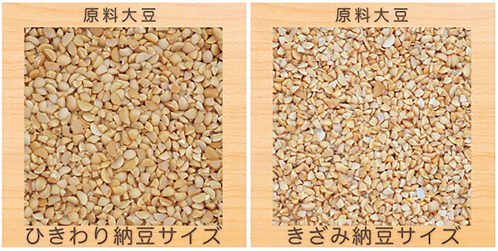 【原料大豆:ひきわり納豆(左)ときざみ納豆(右)】