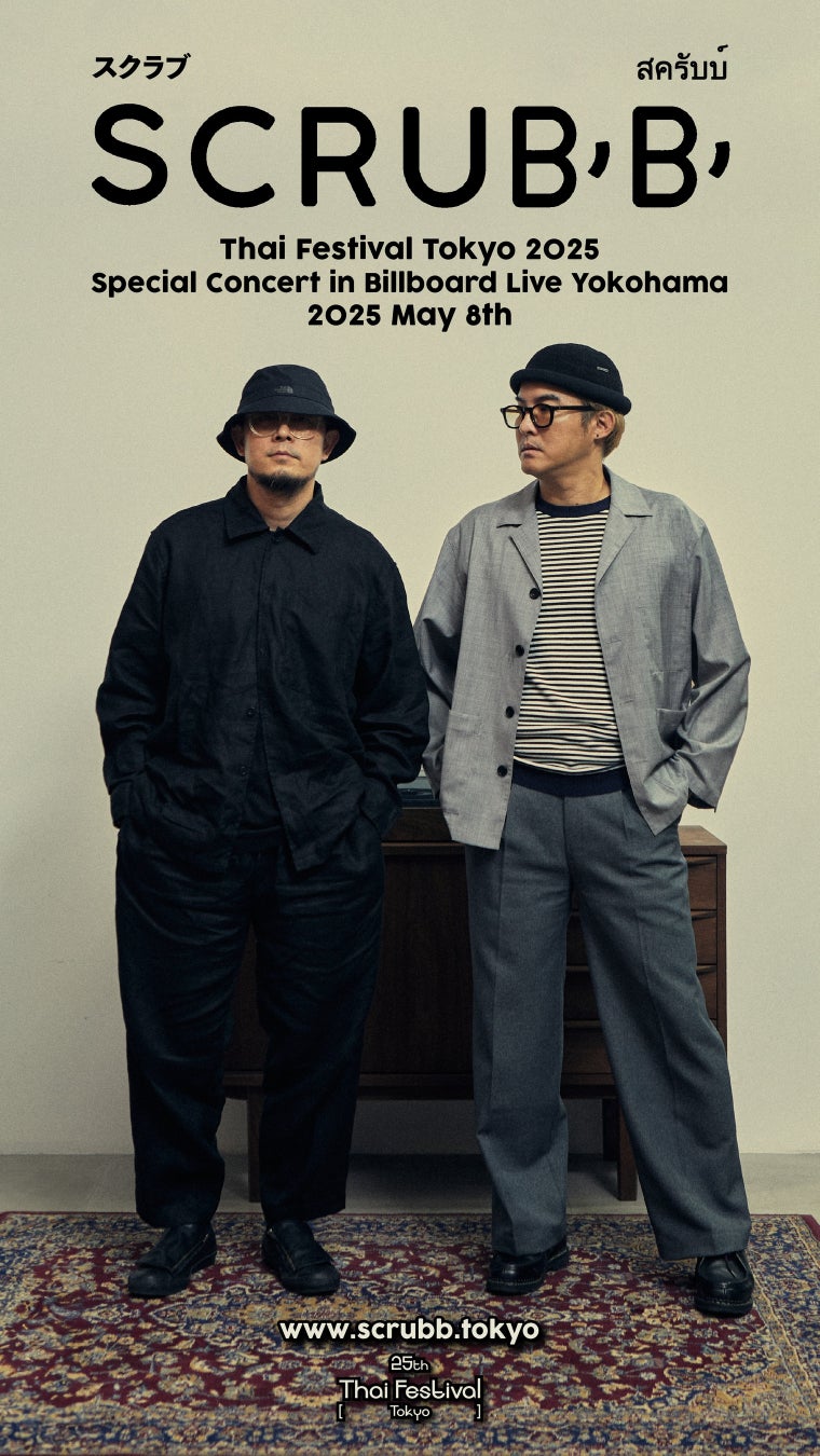 ⼀昨年の初来⽇ではチケットがわずか 10 分で完売したほどの⼈気を誇る Scrubb、今年は⽇本を代表する⼈気を誇るタイフェスティバル東京の有料イベントにて、開催がアナウンスされた。⽇本でも今なお絶⼤な⼈気を誇るドラマ”2gether”の挿⼊曲でも広く認知される彼らだが、今回のライブでは、ビルボードライブでのライブということ、前回とは違ったスペシャルな空間でライブを楽しむことができる。Thai Fes8val ×Scrubb スペシャルグッズ付きチケットや、ファンミーティングなども特別チケットもあわせて展開されるので、ファンにとってはたまらない⼀夜になるであろう。